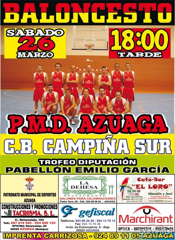 El próximo encuentro será mañana sábado, 26 de marzo, a las 18:00 horas en el Pabellón Emilio García, en el que el P.M.D Azuaga se enfrentará al equipo C.B Campiña Sur Llerena. Motivo por el cual, en esta ocasión desde Campitur tenemos que desear suerte a ambos equipos por igual.